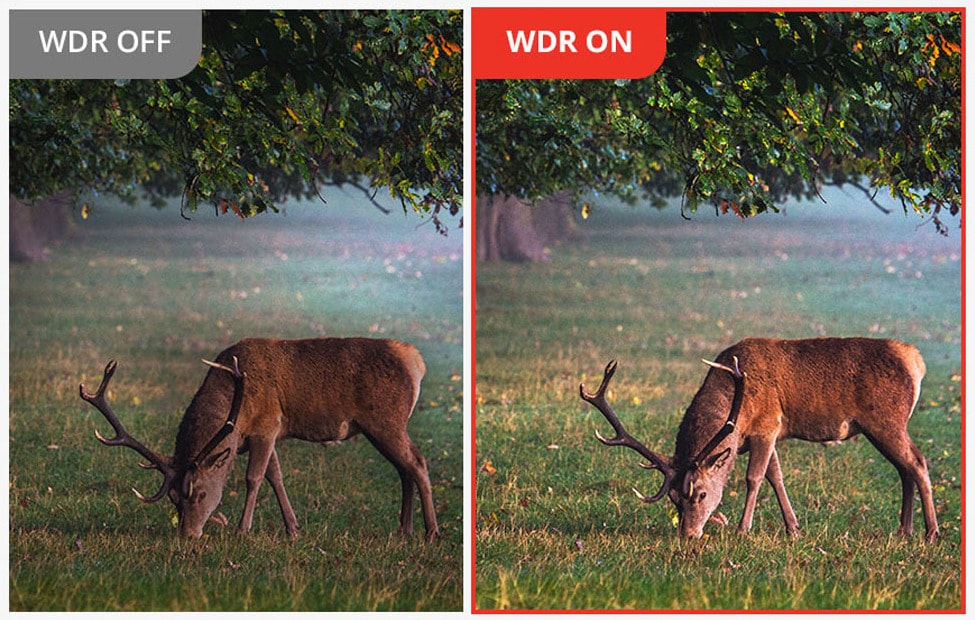 HABROK Proシリーズに搭載されているフルカラー4K UHD CMOSセンサーは、昼間はもちろん、薄明時でも明るく鮮明な画像を提供します。自然で忠実な色を再現することができます。また新しいWDR (ワイドダイナミックレンジ)機能を有効にすれば、様々な照明条件のもとで最適な明るさとコントラストに自動調整され、ディテールが観察しやすくなります。